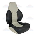 High back boat seat with thick cushions. Generous session. Light gray with dark gray.